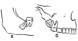 Рис. 3 а - обратное положение нижнего восьмого зуба;