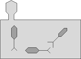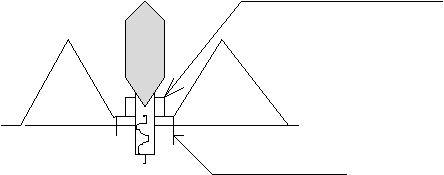 2)Хвостовые нити изгибаются и “заякоривают” шипы и базальную пластинку на поверхность клетки; хвостовой чехол сокращается, заставляя полый стержень входить в клетку; этому способствует фермент - лизоцим, который находится в базальной пластинке; таким образом ДНК вводится внутрь клетки.