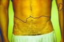 Иногда в области депигментрированных пятен имеются отдельные островки гиперпигментации. Витилигонозные пятна путем слияния могут захвативать обширные участки живота, спины, ягодицы, реже всего туловища и при чередовании с нормальными по окраске участками кожи придают ей пестрый вид. Иногда до появления обесцвеченных участков образуются эритоматозные очаги. Субъективные ощущения отсутствуют, так же как не бывает шелушения и атрофии витилигинозных пятен. Возможно сочетание витилиго со склеродермией, гнездной плешивостью и др.
