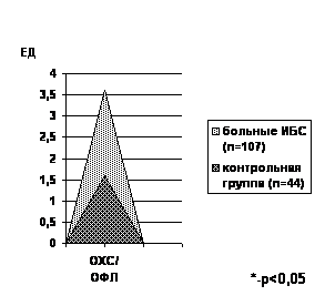 Рис. 2. Соотношение ОХС/ОФЛ в мембранах тромбоцитов | ||