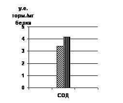 Заслуживают внимания изменения со стороны изучавшихся параметров антиоксидантной защиты; у курящих больных ИБС наблюдался достоверный рост СОД и a-ТФ, однако увеличение a-ТФ было меньшим, чем у некурящих больных (рис.8). Данные корреляционного анализа подтверждают влияние курения на содержание СОД (rxy=+0,5, p<0,02) и a-ТФ (rxy=-0,416, p<0,05) после “Витола”.