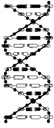 Дезоксирибонуклеиновая кислота, или ДНК (рис. 1), впервые была выделена из клеточных ядер. Поэтому ее и назвали нуклеиновой (греч. nucleus - ядро). ДНК состоит из цепочки нуклеотидов с четырьмя различными основаниями: аденином (А), гуанином (G), цитозином (С) и тимином (Т). ДНК почти всегда существует в виде двойной спирали, то есть она представляет собой две нуклеотидные цепи, составляющие пару. Вместе их удерживает так называемая комплементарность пар оснований. "Комплементарность" означает, что когда А и Т в двух цепях ДНК расположены друг против друга, между ними спонтанно образуется связь. Аналогично комплиментарную пару образуют G и С. В клетках человека содержится 46 хромосом. Длина генома человека (все ДНК в хромосомах) может достигать двух метров и состоит из трех миллиардов нуклеотидных пар. Ген - это единица наследственности. Он представляет собой часть молекулы ДНК и содержит закодированную информацию об аминокислотной последовательности одного белка или рибонуклеиновой кислоты (РНК).
