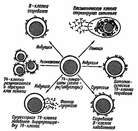 Рис 1 Взаимодействие Т-хелперов с клетками иммунной системы