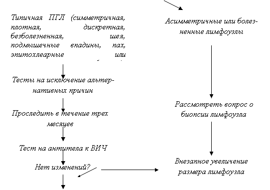 Установившийся порядок медицинского обеспечения больных обычно весьма прост. Больные должны проходить регулярный осмотр – например, каждые два-три месяца. Во время каждого визита должен регистрироваться вес больного, и особое внимание нужно обращать на состояние его кожи и ротовой полости. Если это необходимо, пациента следует направить к соответствующему специалисту. Часто полезно бывает во время каждого визита повторять подсчет форменных элементов крови и определять скорость оседания эритроцитов. Больному нужно предложить повторное посещение, если у него появились признаки возможного развития саркомы Капоши или оппортунистической инфекции – кожные поражения темно-красного цвета, затрудненность дыхания, кашель, дисфагия, понос, потеря веса, лихорадка, головные боли, припадки или помутнение сознания.