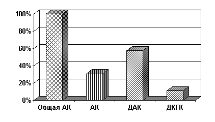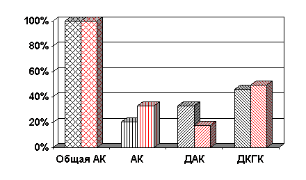 Процентное содержание общей АК, АК, ДАК и ДКГК также демонстрирует превалирование окисленных форм АК над восстановленной.