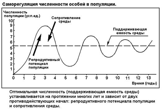 Пищевая пирамида экосистемы, как отражение ее структуры, сохраняет саморегуляцию и устойчивое развитие. Характерная пропорция разных обитателей биоценоза устанавливается сама по себе, в результате процессов саморегуляции и отражает в целом поддерживающую емкость среды. Приведенные цифры являются средними, но реально во всех популяциях происходит колебание численности особей, причем колебания на низшем уровне неизменно ведут к таким же колебаниям на следующем уровне, а в целом система поддерживает равновесное состояние.