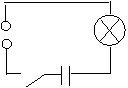 В электростатике было изучено устройство конденсатора и его основные свойства. При этом отмечалось, что постоянный ток не проходит в цепи с емкостью, так как диэлектрик конденсатора разрывает цепь. Иначе обстоит дело в цепи переменного тока. Чтобы показать это, составляют цепь с батареей конденсаторов и последовательно включенной с ней лампой накаливания (рис.7).