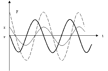 Легко установить, что между смещением, скоростью и действующей силой имеется сдвиг фаз (рис.11).