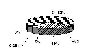 0,2 % – сельское хозяйство; 5 % – физические лица;