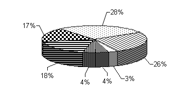 17 % – Срочные кредиты; 4 % – Кредиты физическим лицам;