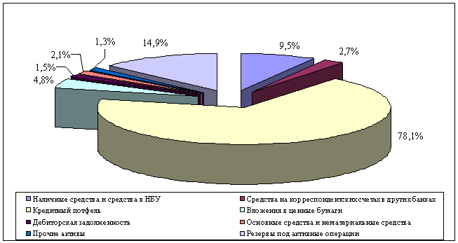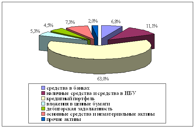 По состоянию на 1.07.2001 года структура общих активов банков Украины была такой: