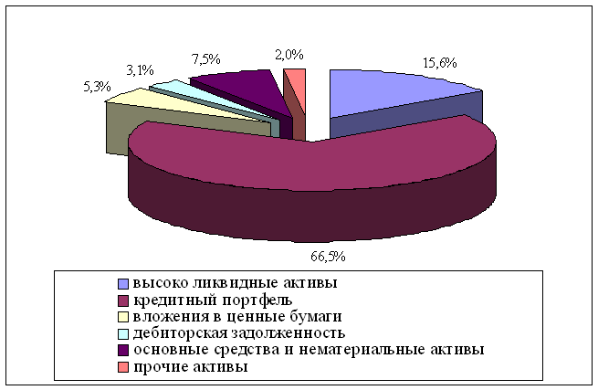 Рис.7 Структура активов морского транспортного банка по состоянию на 1.07.2001 года.