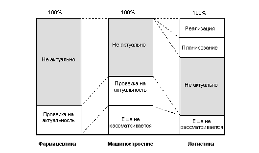 Предприятия вполне могут прийти к выводу, что мобильная коммерция не имеет значения для их бизнеса. К этому заключению пришли в целом 24% опрошенных крупных предприятий. Итоги опроса свидетельствуют о том, что такого мнения придерживаются в основном предприятия определенных отраслей экономики. Фармацевтические предприятия, машиностроительные, а также предприятия, работающие в сфере логистики, не усматривают практической пользы от мобильной коммерции для своего бизнеса.