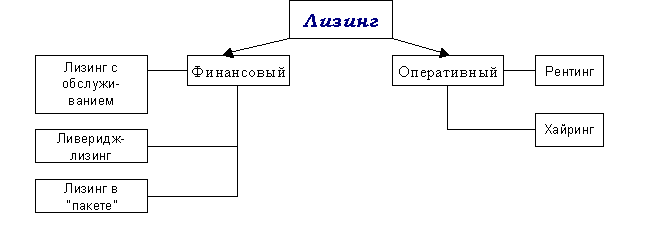 Существует довольно много разновидностей лизинговых сделок. В наиболее общем виде все лизинговые операции делятся на два вида: