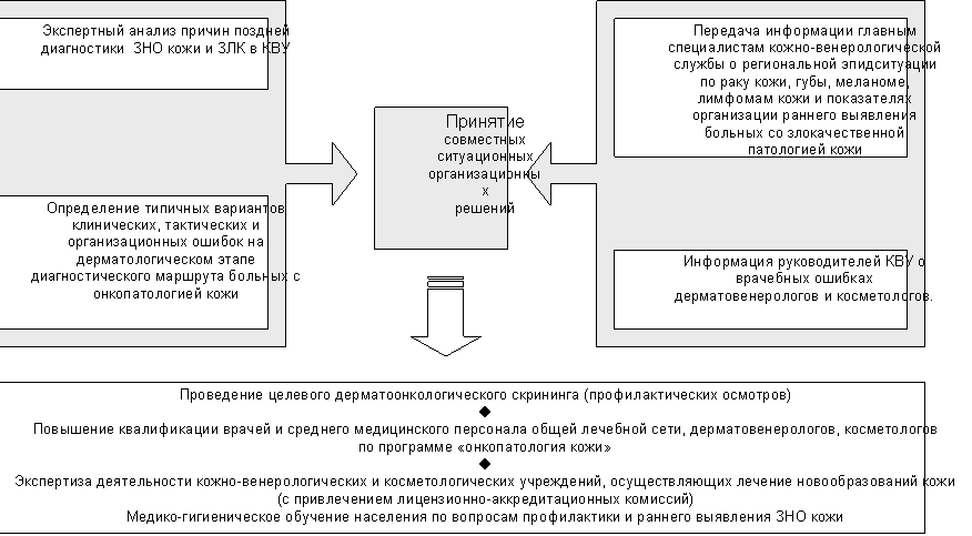 · повышению качества оказания лечебно-диагностической помощи больным со злокачественной патологией кожи;