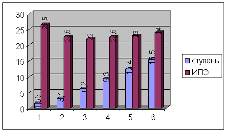 Первоначально величина показателя уменьшается и удерживается некоторое время на постоянном уровне (см. Приложение 3). Величину нагрузки (в Вт), при которой ИПЭ достигает минимального значения и считают критерием физической работоспособности.