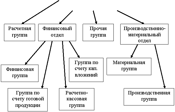 Для организации и ведения бухгалтерского учета на льнокомбинате создана бухгалтерия, которая ведет учет, составляет отчетность и ведет контроль за соблюдением финансовой дисциплины. Бухгалтерию возглавляет главный бухгалтер. Структуру бухгалтерии льнокомбината можно изобразить в виде схемы (см. схему 2 стр. ).