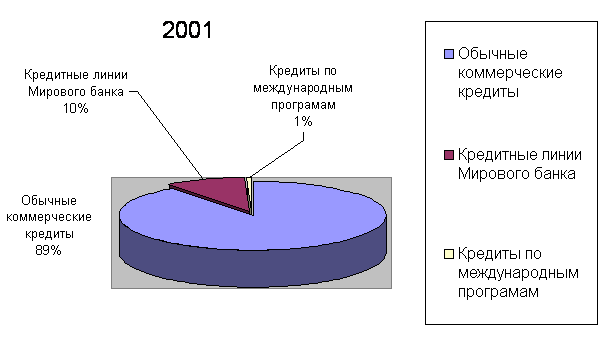 Состав кредитного портфеля банка приведен в таблице 2.4. Банк получил кредитную линию от Мирового Банка в рамках Проекта развития экспорта Мирового Банка. Кредитная линия, предоставленная Банку, и займы, которые предоставляются Банком по этой линией, дено-минированы в долларах США. Банк несет кредитные риски, связанные с этими займами.