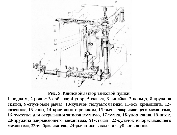 Запирающий механизм (рис. 5) предназначен для прочного запирания канала ствола при выстреле.