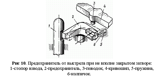 предохранитель от самоспуска и предохранитель от выстрела при не вполне закрытом затворе.
