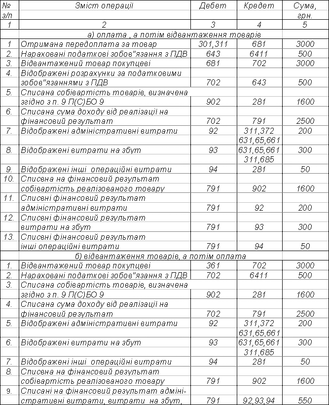 Приклад обліку реалізації товарів і визначення фінансового результату в оптовій торгівлі наведений в таблиці 1.