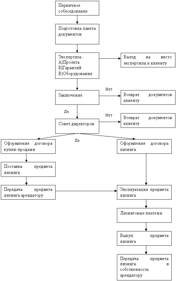 Осуществлению лизинговой сделки предшествует получение заявки от предприятия (научной организации) на какое-либо оборудование (см. Приложение3). Обычно потенциальный (будущий) арендатор обращается с этой заявкой к своему банку, а последний уже предлагает осуществить договор специализированной компании; в то же время, конечно, не исключено и обращение арендатора напрямую к лизинговой компании с предложением заключить лизинговый контракт (см. Приложение1). При положительном ответе данный контракт заключается между лизингодателем (в зависимости от конкретной ситуации - банком или лизинговой фирмой) и лизингополучателем (о содержании контракта речь пойдет ниже) практически одновременно с оформлением приобретения товара лизингодателем у поставщика.