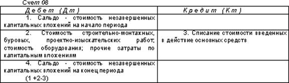 Стоимость зданий, сооружений, оборудования, транспортных средств и других отдельных объектов основных средств, приобретаемых предприятием, отражается с использованием счета 08 «Вложения во внеоборотные активы». Данный счет используется для отражения в бухгалтерском учете всех затрат предприятия, связанных с приобретением и введением в эксплуатацию объектов основных средств, и, таким образом, выполняет функции калькуляционного счета. Аналитический учет по счету 08 ведется по каждому приобретаемому или создаваемому объекту.