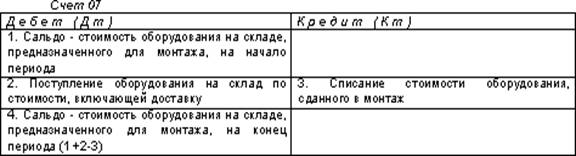 При поступлении оборудования, требующего монтажа, его стоимость отражается по дебету счета 07 «Оборудование к установке» в корреспонденции со счетом 60 «Расчеты с поставщиками и подрядчиками». Сумма НДС по поступившему оборудованию отражается по дебету счета 19 «НДС» и кредиту счета 60.