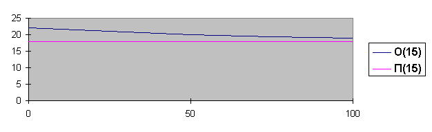 Рассчитаем также балансы и определим зависимость чистой прибыли (ЧП) в процентах к доходу предприятия от величины остатков товаров на складе (ОТ) в процентах к максимальному. Результаты расчетов для двух характерных величин торговых наценок (10 и 15%) представлены на граф.3 и