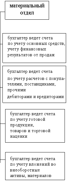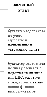Бухгалтерия состоит из главного бухгалтера, заместителя главного бухгалтера, бухгалтера – кассира и бухгалтеров, которые ведут определенные счета.