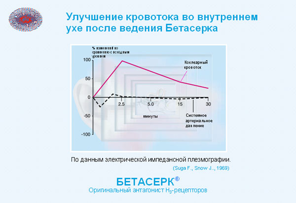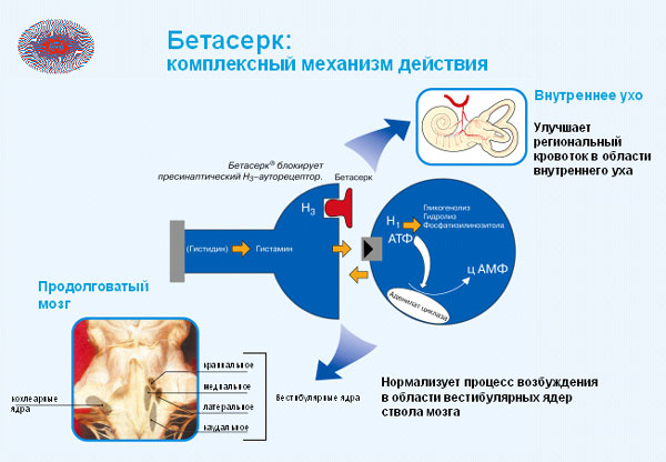 Бетагистин (Betaserc®) является препаратом, наиболее широко используемым для лечения рецидивирующего головокружения, обусловленного болезнью Меньера. Он обладает доказанным эффектом в отношении причин, лежащих в основе заболевания, вызывая быстрое и стабильное устранение головокружения, а также препятствует возникновению приступов и развитию глухоты. Показано, что препарат также эффективен в отношении нарушений слуха и звона в ушах, отмечаемых при болезни Меньера.