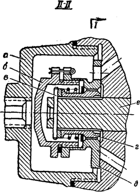 При запуске двигателя сжатый воздух поступает в полость а между колпаком и распределительным диском, а отсюда через золотниковое отверстие диска и каналы б в корпусе воздухораспределителя в трубопроводы, подсоединенные к цилиндрам.