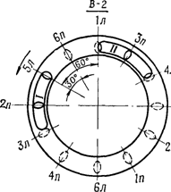 — повернуть коленчатый вал по ходу на 27° от сделанной отметки, если соединительная муфта находится в положении “Зима”, и 30°— в положении “Лето”. В этом положении в центре прорези в золотнике будет находиться отверстие, ведущее в Зп цилиндр (рис. 3, положение //);