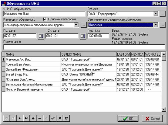 Кнопка «Обучаемые» выводит форму о обучаемых в УМЦ на текущем объекте.