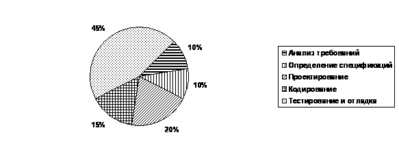 Примерное распределение временных затрат на реализацию отдельных этапов цикла разработки показано на диаграмме 1.