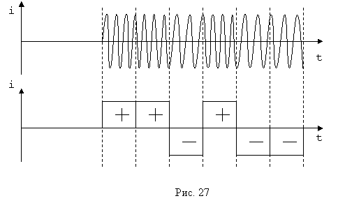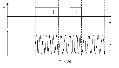 Частотный модулятор изменяет частоту генератора в соответствии с поступающими посылками постоянного тока.