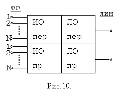 В настоящее время на вооружении войск связи состоит комплект АТТ типа П-327. В тоже время, еще достаточно широко используется комплект АТТ, предшествовавший вышеназванному, который именуется П-318М. Эти комплексы имеют конструктивные, схемные и технические отличия. Однако любая аппаратура ТТ советского или зарубежного производства, устаревшего или новейшего образцов, военная или министерства связи имеет единую структуру, которая может быть представлена в виде, изображенном на рис.10. Таким образом, аппаратура ТТ состоит из трактов передачи и приема. Каждый тракт, в свою очередь, содержит индивидуальное и линейное оборудование. Сторона аппаратуры, которой она включается в канал ТЧ называется линейной , входы и выходы N каналов ТТ располагаются на стороне, называемой телеграфной. К каждому телеграфному каналу, предназначенному для эксплуатации во «II» или в «III» режимах, подключается переходное устройство, общая структура которого представлена на рис.11. Переходное устройство также состоит из оборудования передачи и приема. Сторона ПУ, которым она подключается к АТТ, называется канальной. Телеграфные аппараты подключаются к аппаратной стороне ПУ.