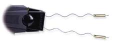 Самое интересное — это принцип действия Taser. В приборе используются специальные заряды, которые, благодаря сжатому азоту, выбрасывают в правонарушителя две стрелки на проводах. Электрическое напряжение на так называемые внешние электроды подаётся с помощью миниатюрных токоведущих проводников — проще говоря, иглы соединены тонкими прочными проводками с батарейками AA Energizer в рукоятке Taser.