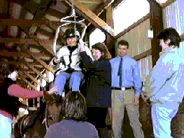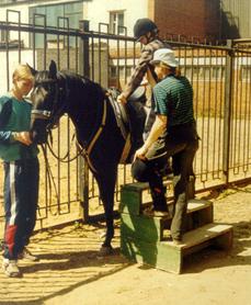 Если нет пандуса, можно использовать монтуар ( лесенку с тремя-четырьмя ступеньками), который делает посадку ребенка на лошадь более удобной и частично облегчает задачи методиста.