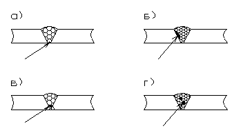 5) Плохая очистка поверхности валиков от шлака при многослойной сварке;