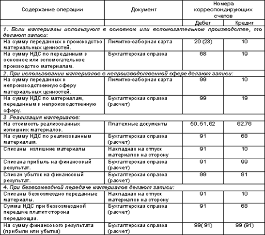 3. Основные проводки по списанию и учету материально-производственных запасов.