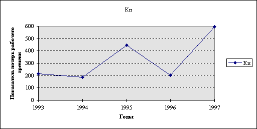 Показатель потерь рабочего времени на 1000 работающих за определенный период времени (1 год) более полно характеризует состояние травматизма в хозяйстве. Кп = (Дн/Пр)1000, где Пр - среднесписочное число работающих, чел.