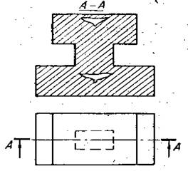 Фасонные отливки отличаются от слитков возможностью развития в них не одной а нескольких усадочных раковин. Действительно, в том случае, иногда отливка состоит из нескольких массивных частей, соединенных между собой сравнительно тонкими стенками, эти стенки, успеют затвердеть раньше, чем произойдет кристаллизация в массивных частях, и для каждой отдельной массивной части окажется справедливой та схема, которая была рассмотрена применительно к слитку. Внутри каждой массивной части окажется своя собственная усадочная раковина. Пример фасонной отливки, в которой должны образоваться две усадочных раковины, дан на рис. 4.