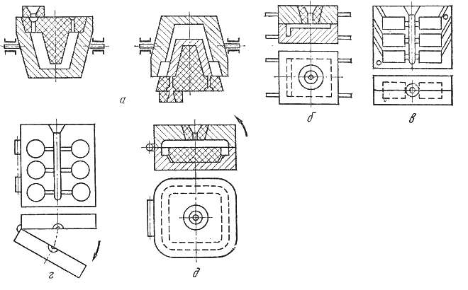 Изложите сущность способа литья в кокиль; изобразите схемы кон- струкций кокилей. Укажите применяемые сплавы, достоинства, недостатки и области применения этого способа.
