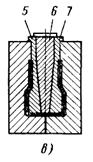 навливают и удаляют вручную. Металлические тержни, выполняющие отверстии и полости простых очертаний (рис. 2.8, б, см. рис. 2.1.) до момента полного извлечения отливки «подрывают» для уменьшения усилия извлечения стержня. Полости более сложных очертаний выполняются разъемными (рис. 2.8, в) или поворотными (рис. 2.8, г) металлическими стержнями.