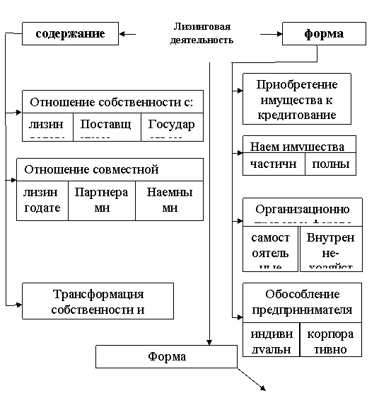 | Объем обслуживания лизингодателем передаваемого имущества | С полным набором услуг | Оказывает услуги по техническому обслуживанию ремонту страхованию, маркетинговым исследованиям, привлечению на работу специалистов | Мокрый (полный) | Полное обслуживание эксплуатации объекта | ||