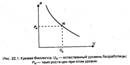 Кривая Филлипса -указывает на наличие обратной связи между движением цен (и заработной платы) и уровнем безработицы. В условиях депрессии, для которой характерно снижение или, по крайней мере, торможение цен, наблюдается рост безработицы. С наступлением подъема происходит рост цен (повышенный спрос на товары) и уровень безработицы снижается. С повышением заработной платы занятость растет, а безработица снижается. Но повышение заработной платы означает рост издержек, а следовательно, и цен. Повышение же цен, как правило, означает снижение безработицы. Рост цен (т.е. инфляция) выступает в качестве платы за сокращение безработицы. Чем выше темпы инфляции, тем ниже размеры безработицы. Чем ниже темп инфляции, тем большее число людей вы. нуждены заниматься поиском работы.