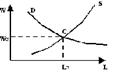 Кривая спроса на труд и кривая предложения труда пересекаются в точке Е. Этой точке на графике соответствует определённый уровень реальной заработной платы (РЕ) и заданное этим уровнем предложение труда (LE). В точке Е спрос на труд равен предложению труда, т.е. рынок труда находится в равновесном состоянии. Это означает, что все предприниматели, согласные платить заработную плату РЕ, находят на рынке необходимое количество труда, их спрос на труд удовлетворён полностью. В положении рыночного равновесия полностью трудоустроены все работники, готовые предложить свои услуги при заработной плате РЕ. Поэтому точка Е определяет положение полной занятости.