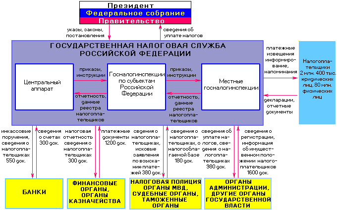 Рис. 2 Схема потоков информации Госналогслужбы России