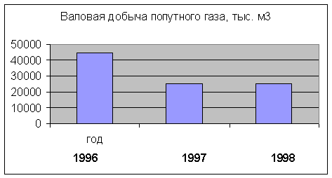 В 1998 году добыча газа возросла на 30 тыс. м3 (0,1%). Это связано с увеличением газового фактора на 0,2 (0,2%), несмотря на то, что коэффициент утилизации стал ниже предшествующего газ на 0,1.